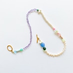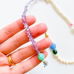 淡水パール、天然石(アメジスト)、ガラスビーズ、アクリルビーズなど